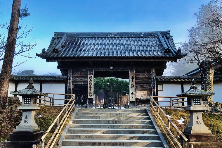 【中尊寺】市內典雅的東北第一大名寺,開創於西元 850年,在1105年由藤原第一代的清衡親手重建;當時的平泉有 21所堂宇和300所以上的佛教設施,是可與京相匹敵的文化都市,在最盛時期約有40個燈塔。