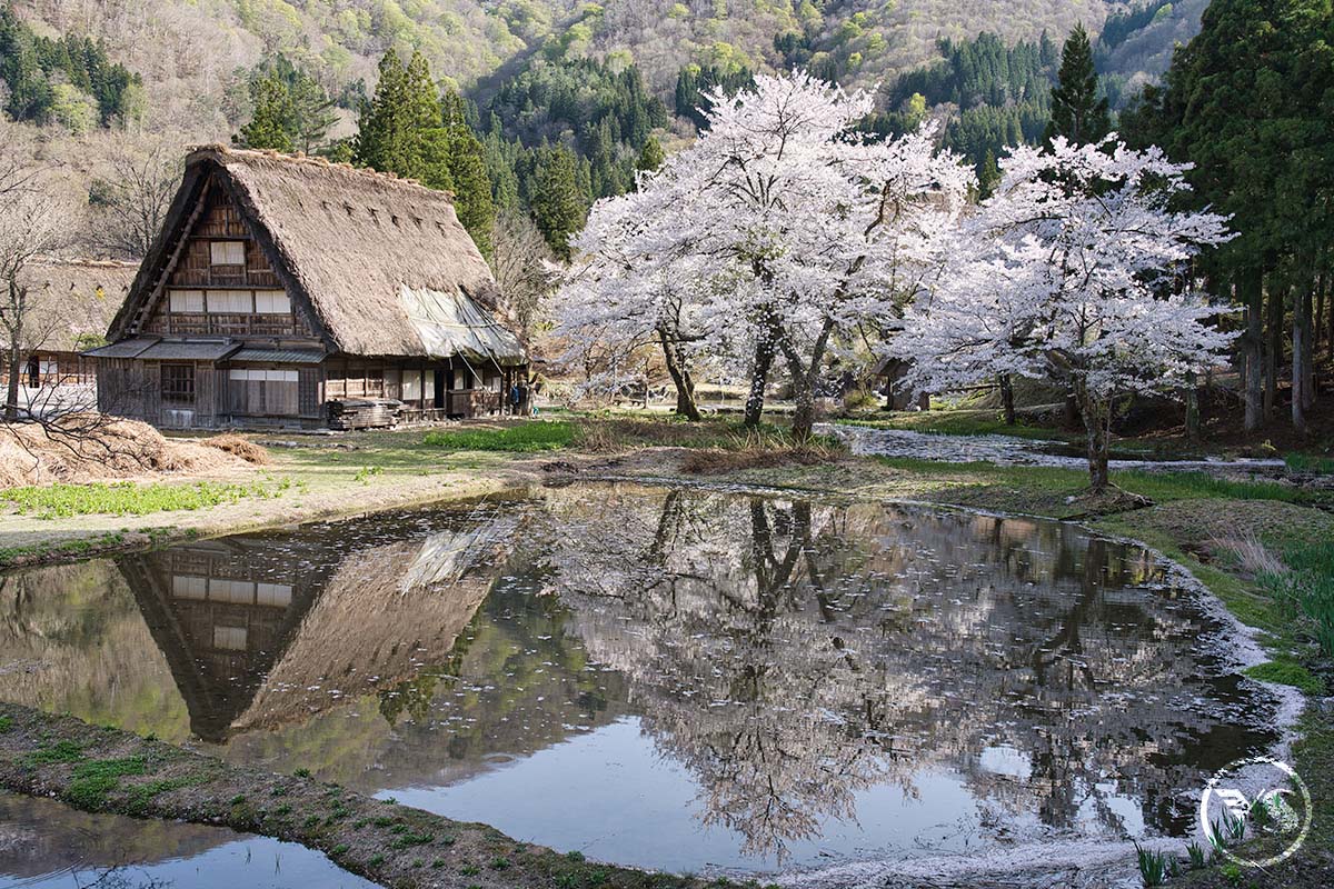 【白川鄉合掌村】世界遺跡之處,將兩個建材合併成叉手三角形狀屋頂,稱為「合掌」,可減少受風力,且調節日照量,使屋內得以冬暖夏涼。因在深山之故,從古以來居民被大自然之天氣變化考驗而集智慧之結晶以稻草蘆葦合掌形之屋頂建築住屋來維持嚴東下雪天數多之安全。因整個村莊都同樣之建築模型,幾百年均沒改變完整保留下來,今人特別感到不同社會之情景。